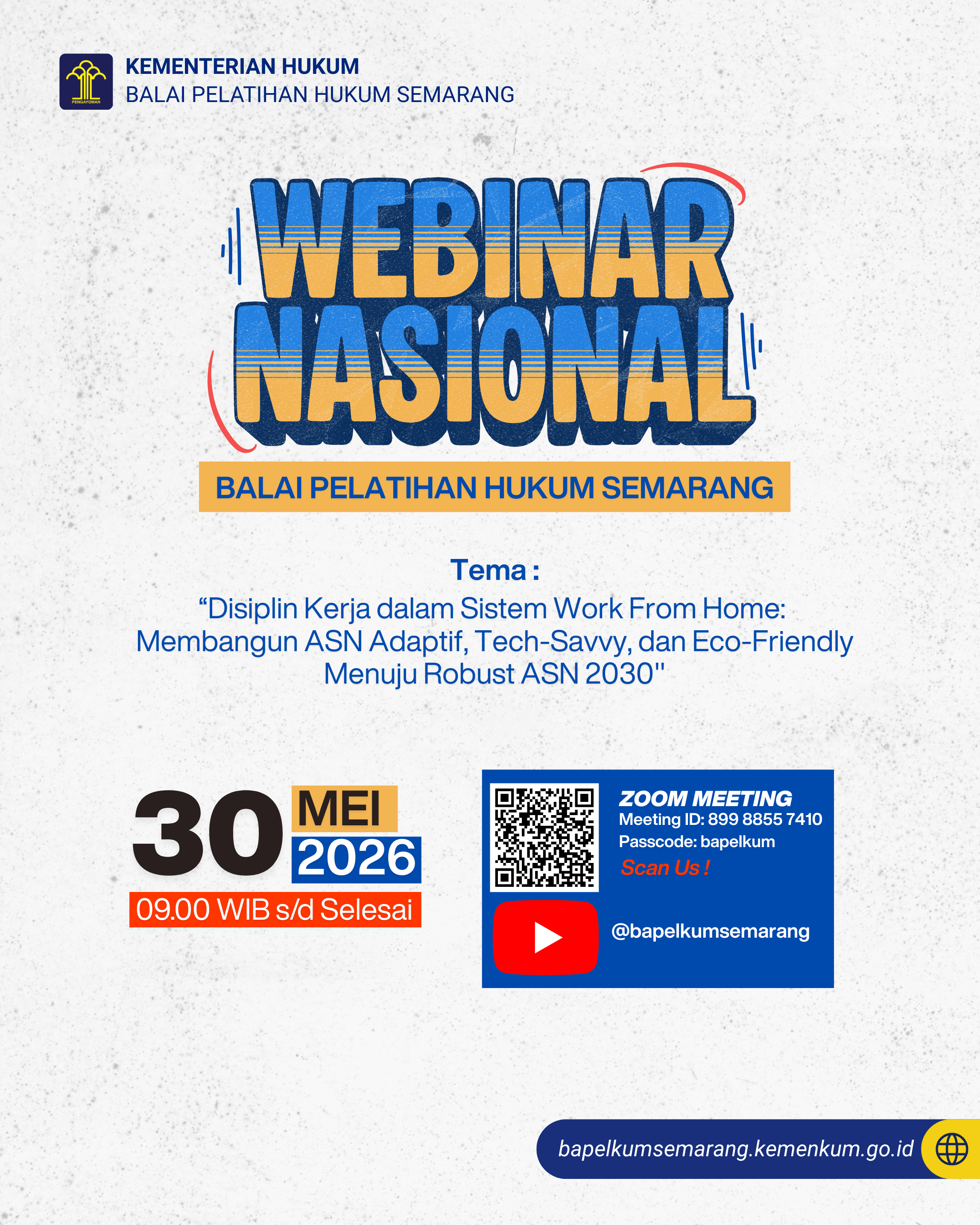 Membangun ASN Adaptif, Tech-Savvy, dan Eco-Friendly Menuju Robust ASN 2030 webinar nasional yang membahas transformasi paradigma kerja ASN di era digital pasca-pandemi secara mendalam dan aplikatif.